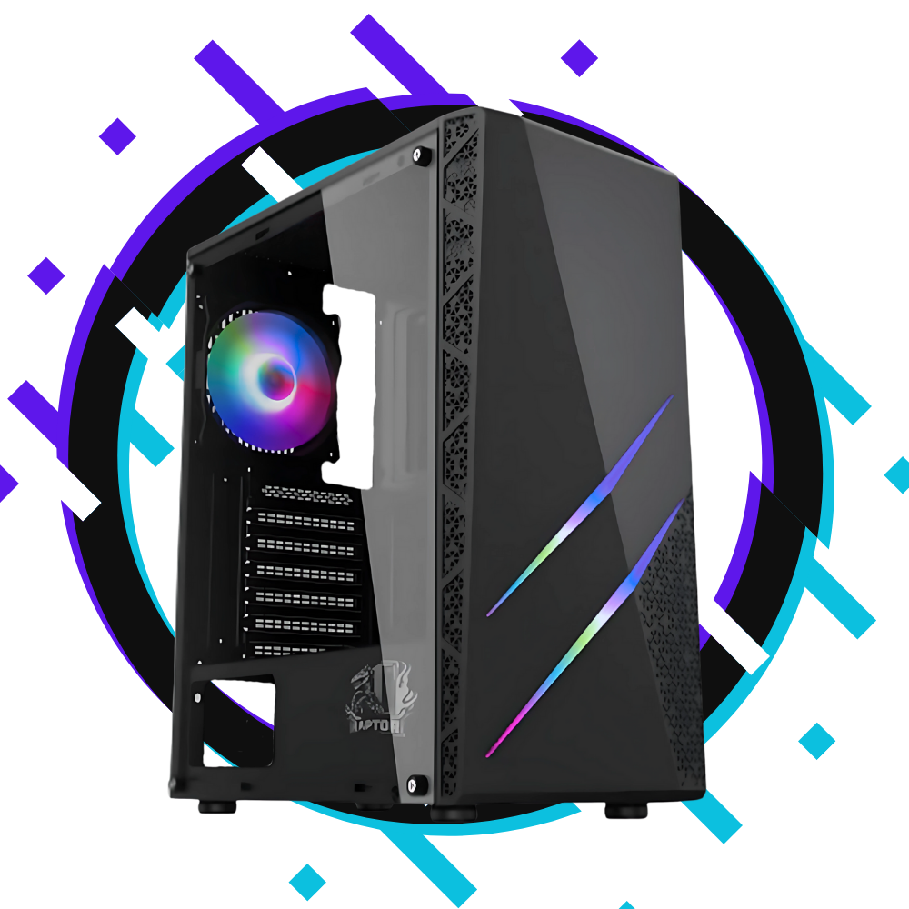 La gran diferencia está en su fuente con watts reales, que brinda estabilidad y deja el camino abierto para sumar una placa de video dedicada o hacer upgrades más exigentes sin preocuparte por la energía. También cuenta con gabinete espacioso y estética gamer.
