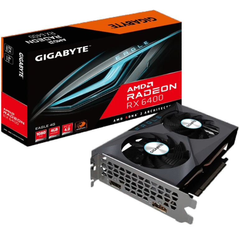 La GIGABYTE Radeon RX 6500 XT EAGLE 4GB es una placa de video de entrada orientada al gaming en 1080p, pensada para usuarios que buscan una opción económica y eficiente para juegos competitivos y títulos actuales en calidad media.